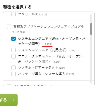 「システムエンジニア(Web・オープン系・パッケージ開発)」が 11,135件ですので、